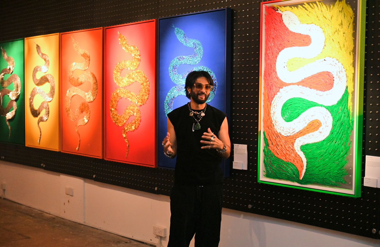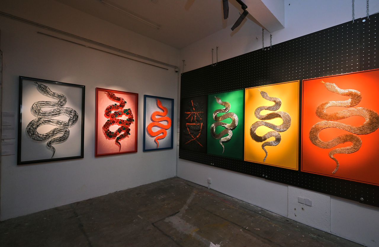La inspiración detrás de “Creación MITO” surgió después de que completé la exposición “Evolución MITO” en 2024. Decidí que sería intrigante continuar creando arte en torno a los 12 animales del zodíaco chino, y que cada animal se conectara con un aspecto diferente de mi vida durante estos últimos 12 años. En este caso, la Serpiente estaba perfectamente alineada con mi viaje espiritual y transformación.