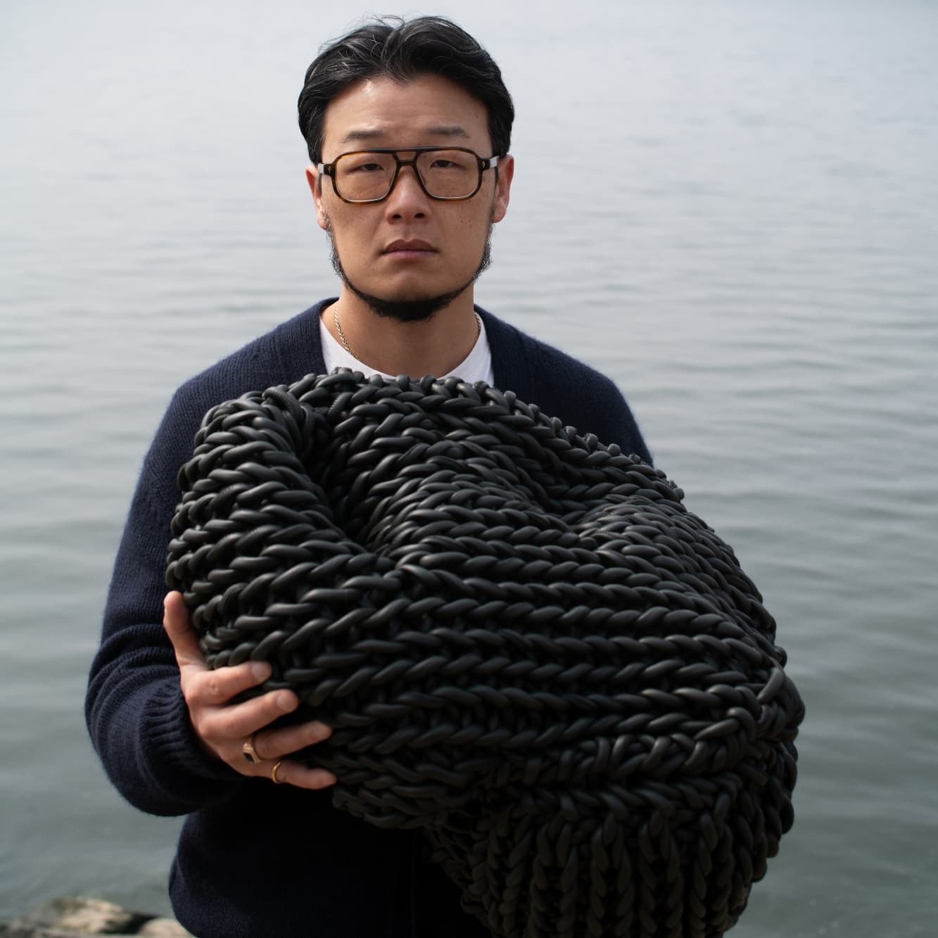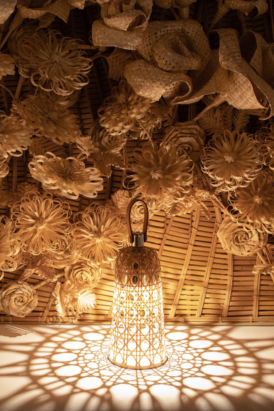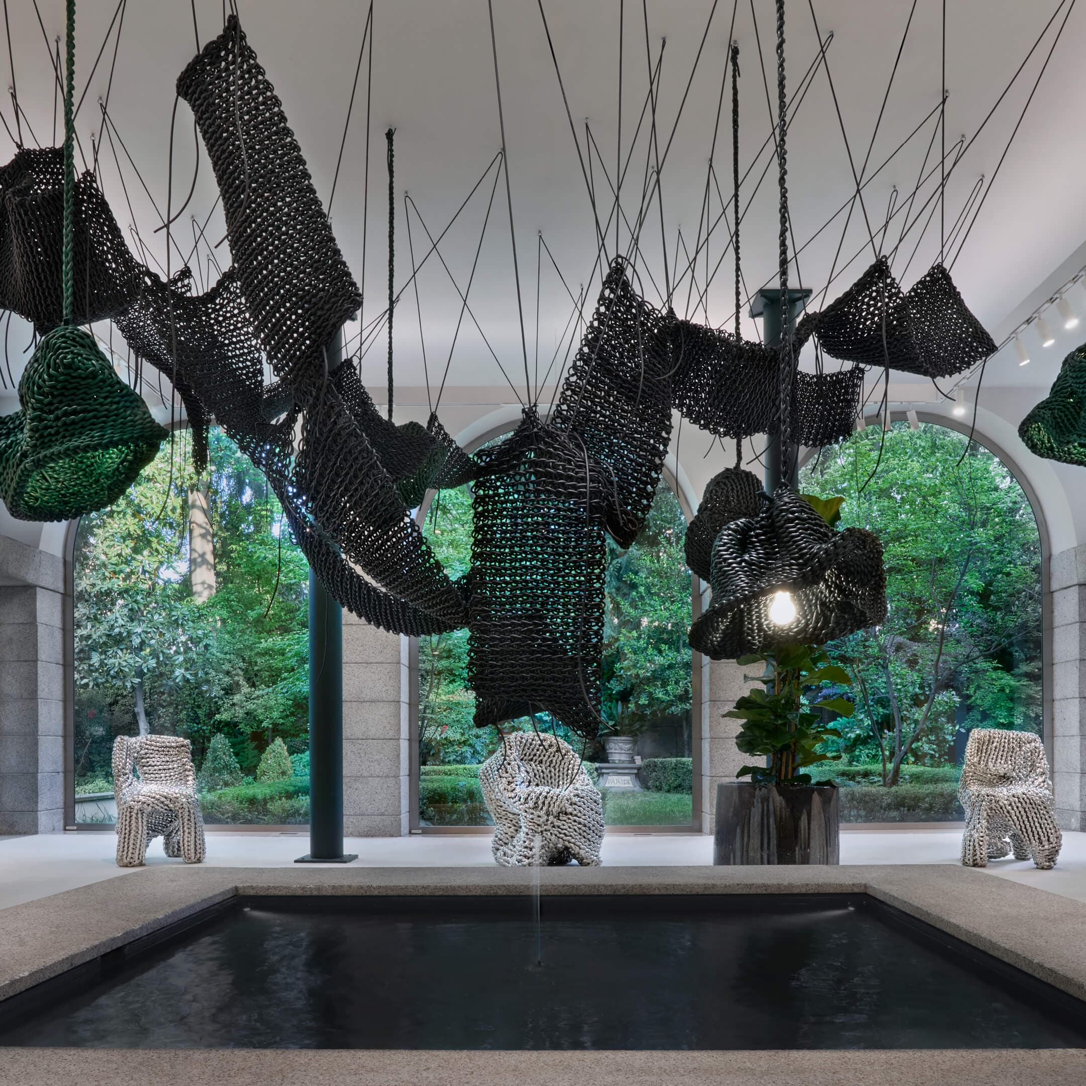 La práctica de Lee tiene sus raíces en la experimentación de materiales y técnicas tradicionales como el tejido, la cestería y el esmaltado, que informaron la dirección conceptual de la instalación. Su trabajo abarca materiales como metal, mármol, esmalte, acero y fibras naturales, y a menudo explora cómo interactúan diferentes superficies y estructuras cuando se unen. Este enfoque en el encuentro y la transformación se alinea con el lenguaje de diseño propio de Bottega Veneta, que se define por su artesanía en cuero y la técnica de tejido Intrecciato.