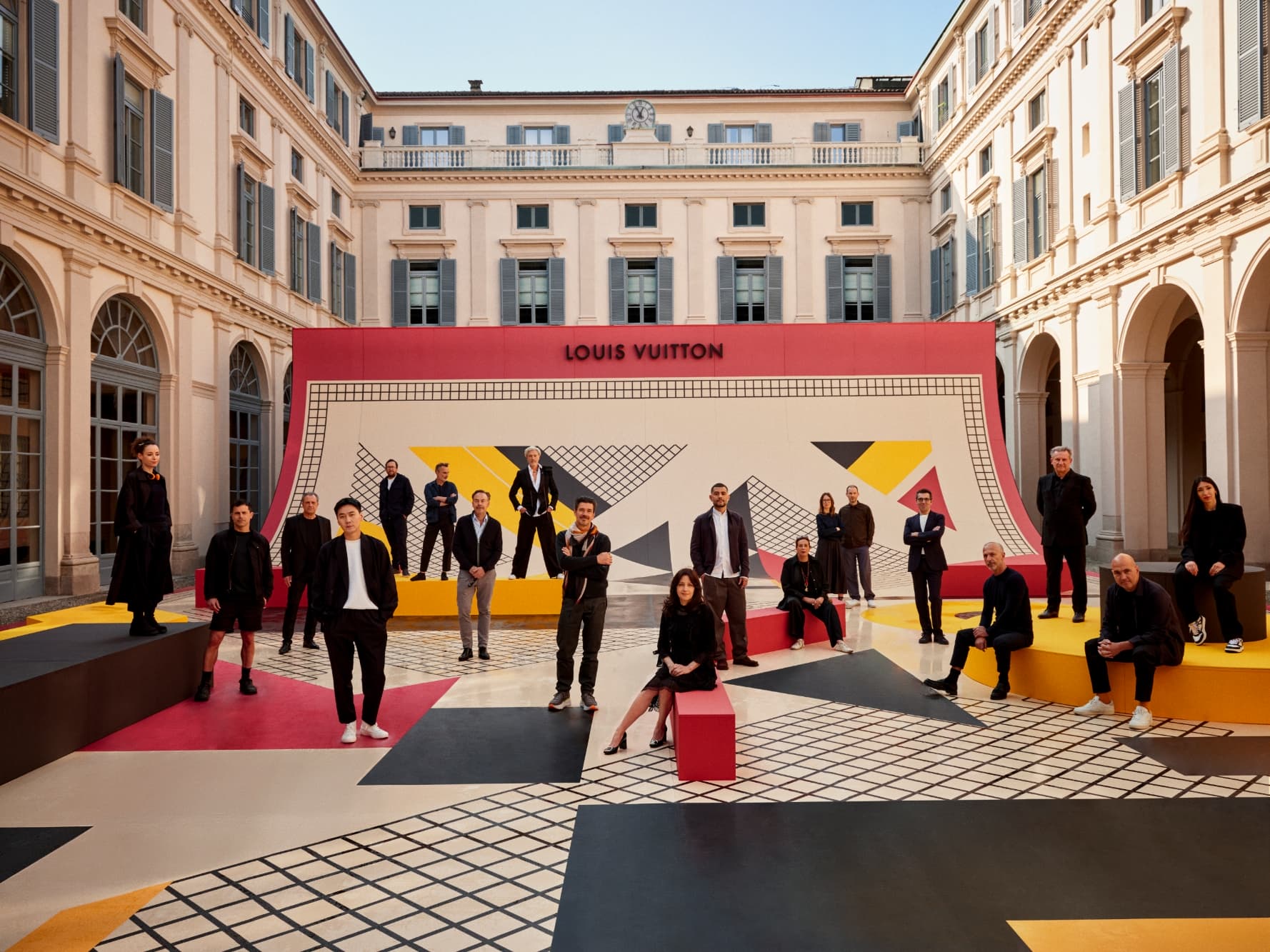 La exposición se extiende más allá de los interiores hasta el patio, donde una instalación a gran escala, desarrollada en colaboración con la Accademia di Belle Arti di Brera, traduce el lenguaje gráfico de Legrain en una obra monumental específica para un lugar. Además de la presentación principal, la boutique de Louis Vuitton en Via Montenapoleone exhibe una serie de baúles que subrayan la herencia técnica de la casa. Estos incluyen el Malle Courrier Lozine Maison de Famille, elaborado en vidrieras e inspirado en los detalles Art Nouveau de la casa familiar en Asnières, así como el Malle Paravent y el Malle Lit, este último una reinterpretación contemporánea de una cama de viaje concebida por primera vez en el siglo XIX. En ambos lugares, la exposición subraya cómo la identidad de Louis Vuitton se define por un diálogo constante entre el pasado y el presente, con referencias históricas que sirven como base para la experimentación continua.