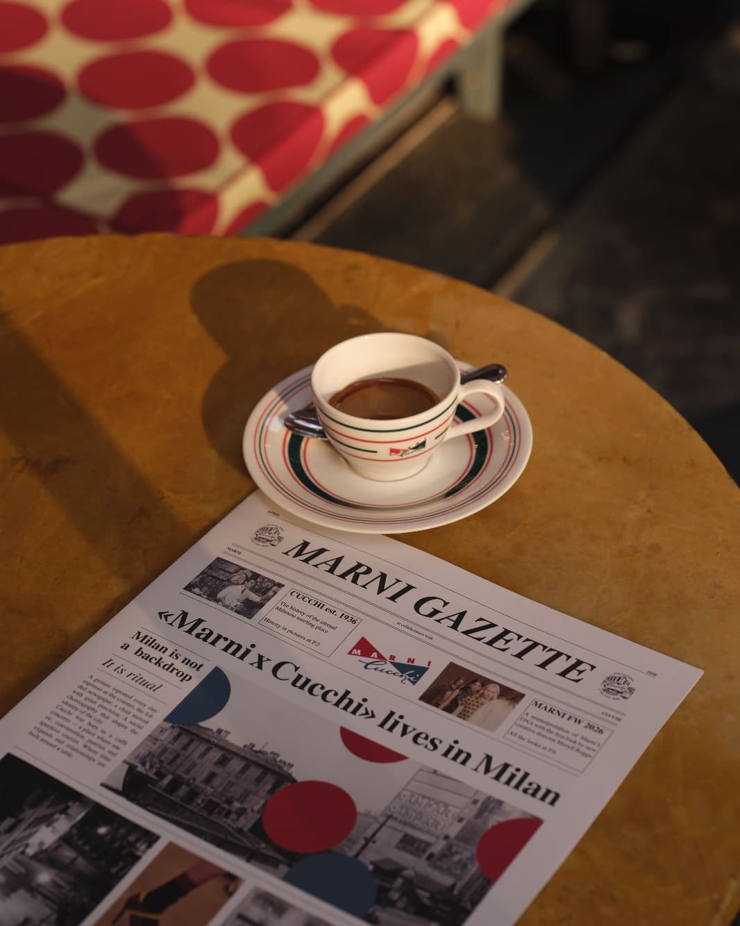 Marni presentó MARNI x CUCCHI, un proyecto inmersivo desarrollado con Pasticceria Cucchi y diseñado por RedDuo Studio, que reinterpreta uno de los destinos sociales históricos de Milán a través del lenguaje creativo de Marni. Inaugurado antes de la Semana del Diseño y en funcionamiento hasta el 15 de julio de 2026, el proyecto transformó el café en un escenario contemporáneo para los rituales milaneses, desde el capuchino matutino hasta el aperitivo.