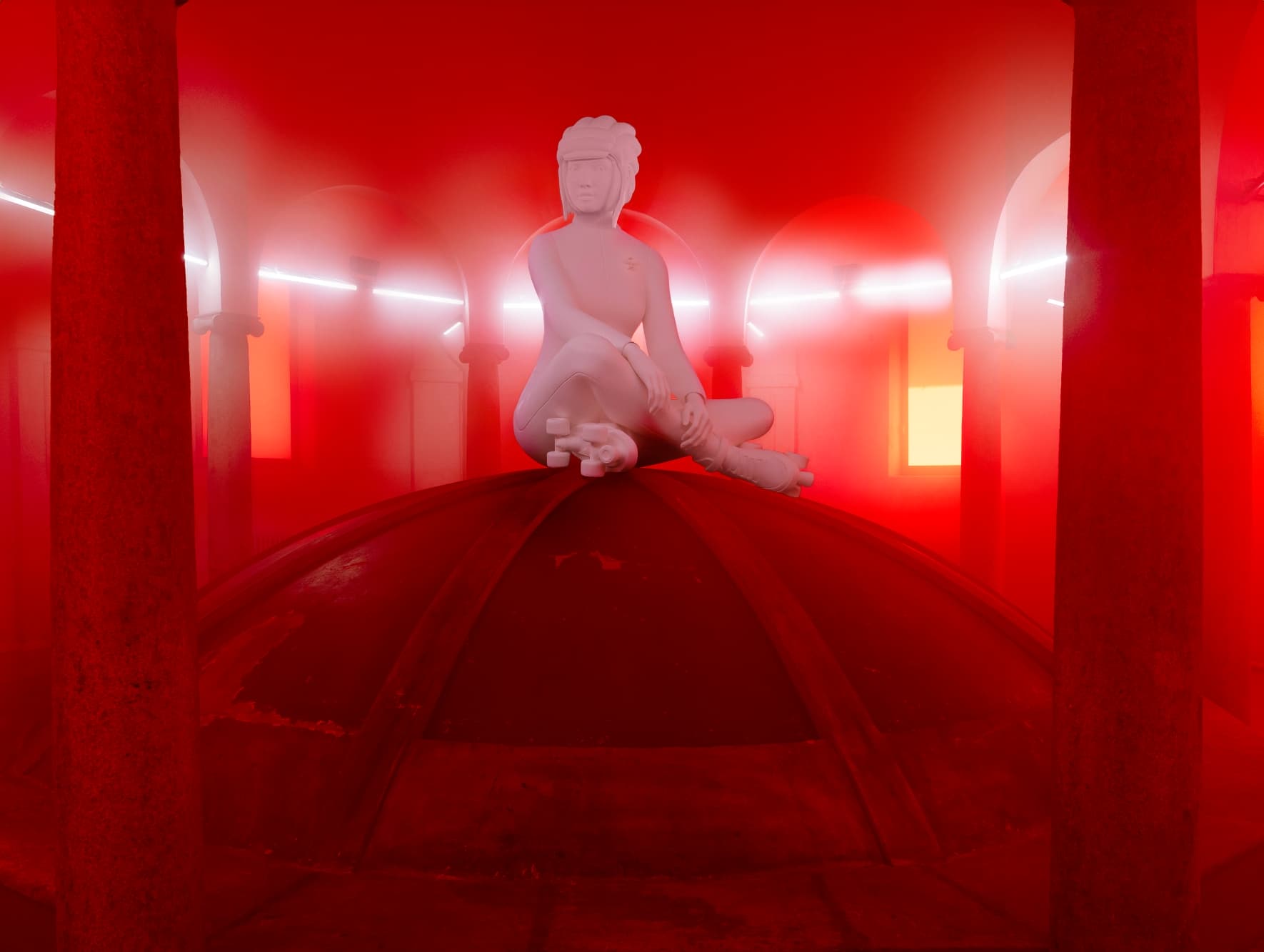 La instalación se desarrolló en tres niveles distintos. El primero presentó un laboratorio de diseño especulativo con objetos de edición limitada desarrollados para el proyecto. El segundo transformó el espacio en una discoteca sobre patines animada por un robot DJ, transformando la atmósfera en un ambiente performativo impulsado por la música. El nivel final culminó en una cúpula celestial donde la representación operística se reinventó a través de una lente futurista, cerrando la experiencia en un registro más atmosférico e inmersivo.