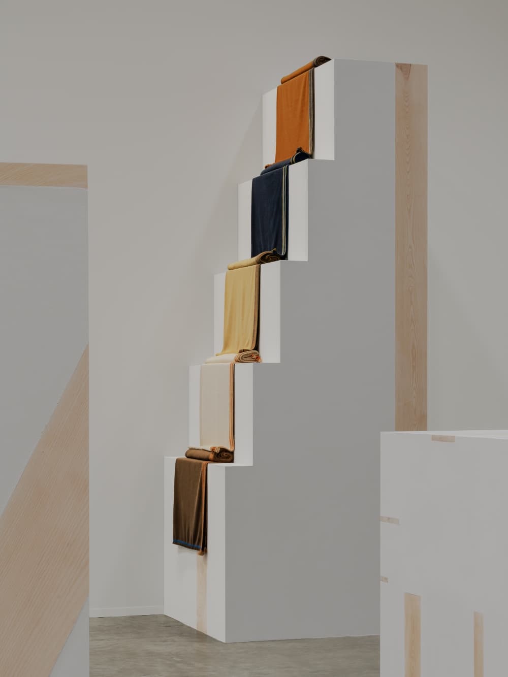 Para la instalación de este año, Loro Piana presentó “Estudios, capítulo uno: sobre el cuadros” en su sede de Cortile della Seta. La exposición estuvo dedicada a los cuadros como objeto central en el vocabulario textil de la Casa desde mediados de la década de 1980, cuando surgió por primera vez como uno de los primeros productos terminados de Loro Piana junto con las bufandas. La muestra reunió 24 cuadros, cada uno tratado como un estudio individual, y organizados a lo largo de un recorrido estructurado de cinco secciones temáticas. “Paisajes de Loro Piana” inauguró la exposición con paisajes que evocan Valsesia, región fundadora de la Casa, junto con entornos montañosos vinculados a los deportes de invierno y a los viajes en coches clásicos por terrenos nevados. “Codes of the House” se centró en motivos característicos, incluido el patrón Belt desarrollado originalmente como forro de prendas y el Suitcase Stripe creado por primera vez para baúles de viaje utilizados para transportar muestras de tela.
