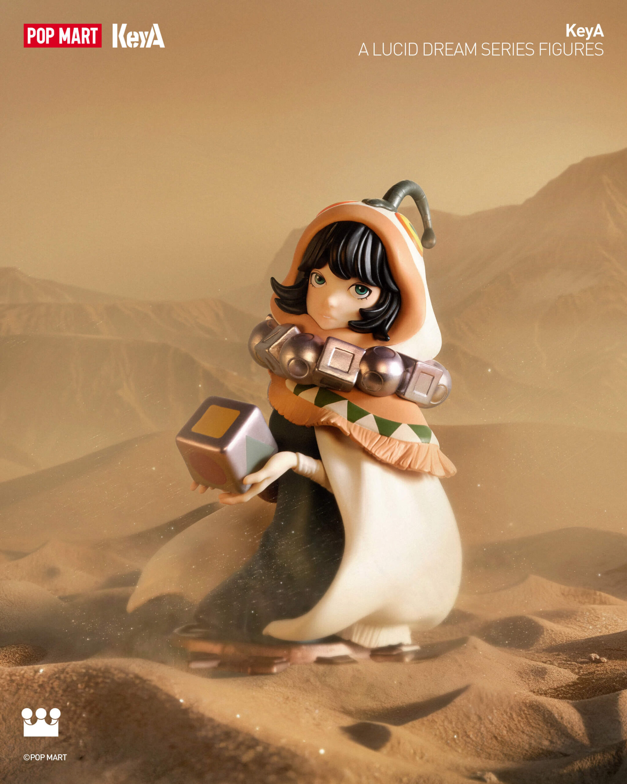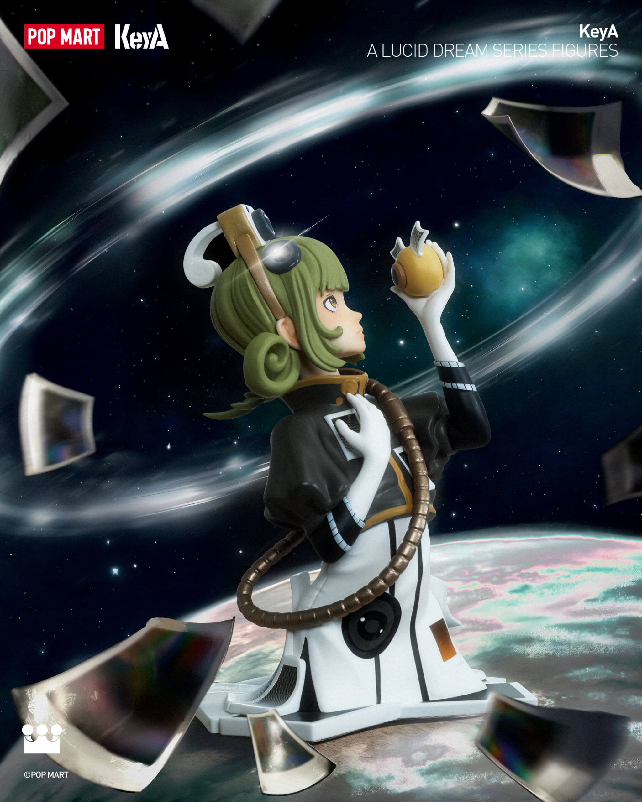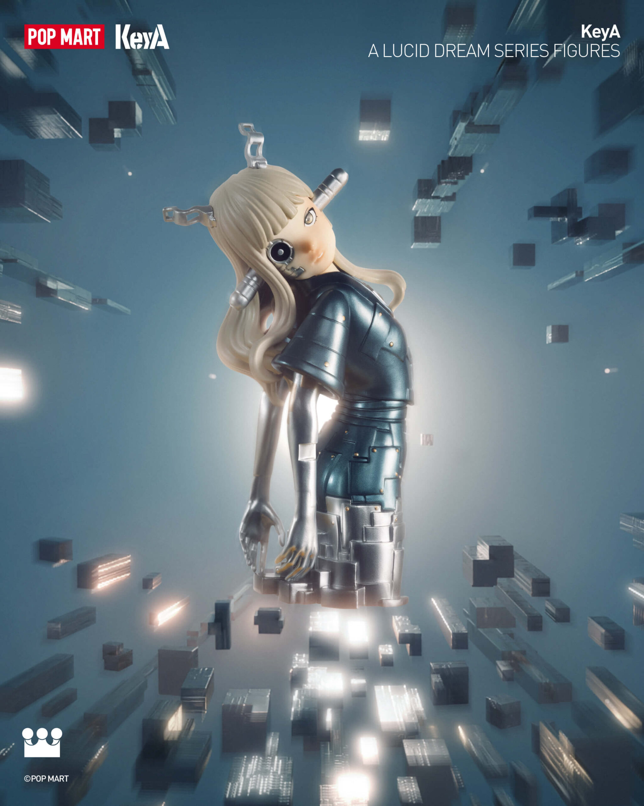 Las nuevas figuras de KeyA: A Lucid Dream Series amplían este universo narrativo. La colección imagina a KeyA viajando a través de líneas de tiempo fracturadas y entornos surrealistas donde los sueños y la realidad se fusionan. Cada pieza refleja una etapa diferente de exploración y transformación, retratando al personaje mientras busca la verdad, el crecimiento y nuevos mundos más allá de los límites fijos. Las obras individuales de la serie exploran distintos estados, desde la búsqueda de la verdad en paisajes digitales hasta la fusión de mundos orgánicos y mecánicos, transformando la colección en un sistema narrativo en capas en lugar de un conjunto de objetos independientes.
