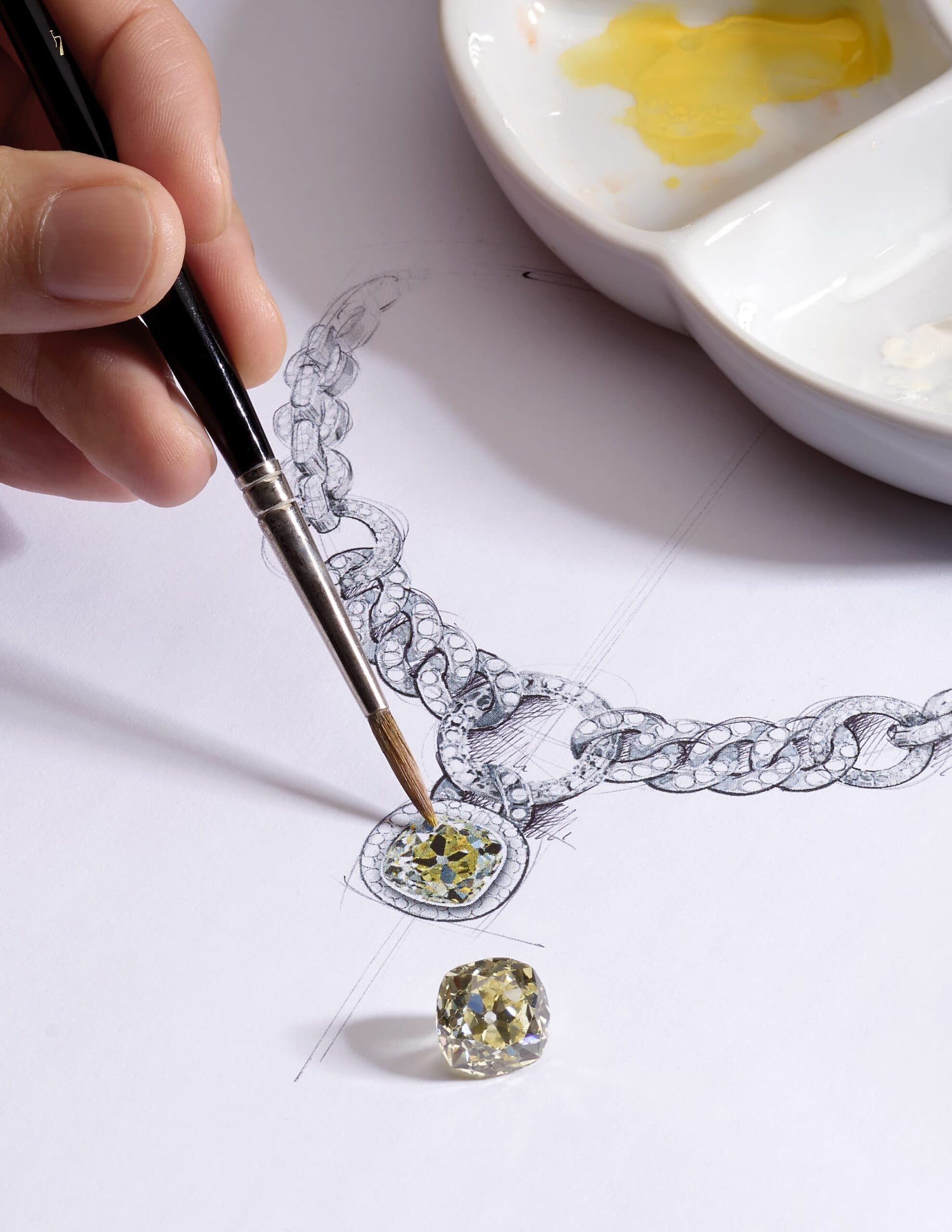 Vicente Castaldo: Es realmente difícil elegir, para ser honesto. El collar Yellow Moon Diamond de Collezione 1967 ocupa un lugar especial en mi corazón. Encontramos ese perfecto diamante amarillo de fantasía de talla brillante de una mina antigua de 12 quilates. Colocarlo sobre oro blanco natural con incrustaciones de 825 diamantes blancos fue como capturar la luz de la luna. Pero lo que lo convierte en mi favorito es el viaje: trabajar junto a nuestro maestro de gemas Stefano Cortecci para encontrar esta gema especial y observar a nuestros artesanos darle vida a esta visión. Representa la paciencia, la pasión y la búsqueda de lo extraordinario, todo lo que representa Pomellato.