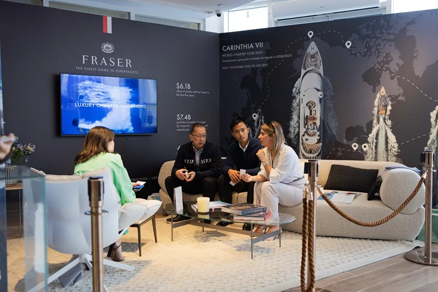 Fraser, representada en Asia por Asiamarine, presentó el Fraser Lounge – con exhibiciones y espacio para consultas privadas, en el lobby de la casa club, donde Estilo yate De nuevo había un stand junto a la entrada.
