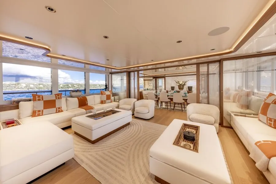 Incluso en el interior, los muebles empotrados ocultan el almacenamiento, una mesa de comedor extensible tiene capacidad para reuniones más grandes y los asientos se pueden reconfigurar para diferentes ocasiones. Los trabajos técnicos fueron igualmente completos, desde motores principales reacondicionados hasta nuevos estabilizadores CMC y sistemas mejorados en todo momento.
