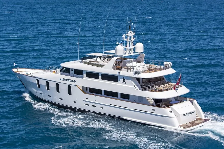 En sus cubiertas, ofrece una terraza con piscina de hidromasaje, barbacoa y mesas de comedor bajo toldos, así como comedor protegido en la cubierta del puente de popa. Con motores reconstruidos, nuevas cubiertas de teca y sistemas reacondicionados, Mundo silencioso es un crucero probado y de piernas largas, listo para su próximo capítulo.
