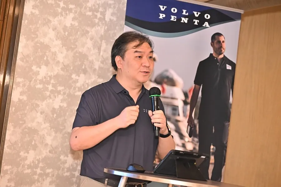 Con sede en Shanghai, Sunny Leung, director de Volvo Penta China, se dirigió recientemente a una sala de 60 profesionales de la industria náutica y propietarios de embarcaciones en Hong Kong sobre los últimos desarrollos de Volvo Penta, el elogiado fabricante de motores sueco. La presentación se realizó ante concesionarios, casas de bolsa, astilleros de servicio y mantenimiento, puertos deportivos y miembros de asociaciones de yates.