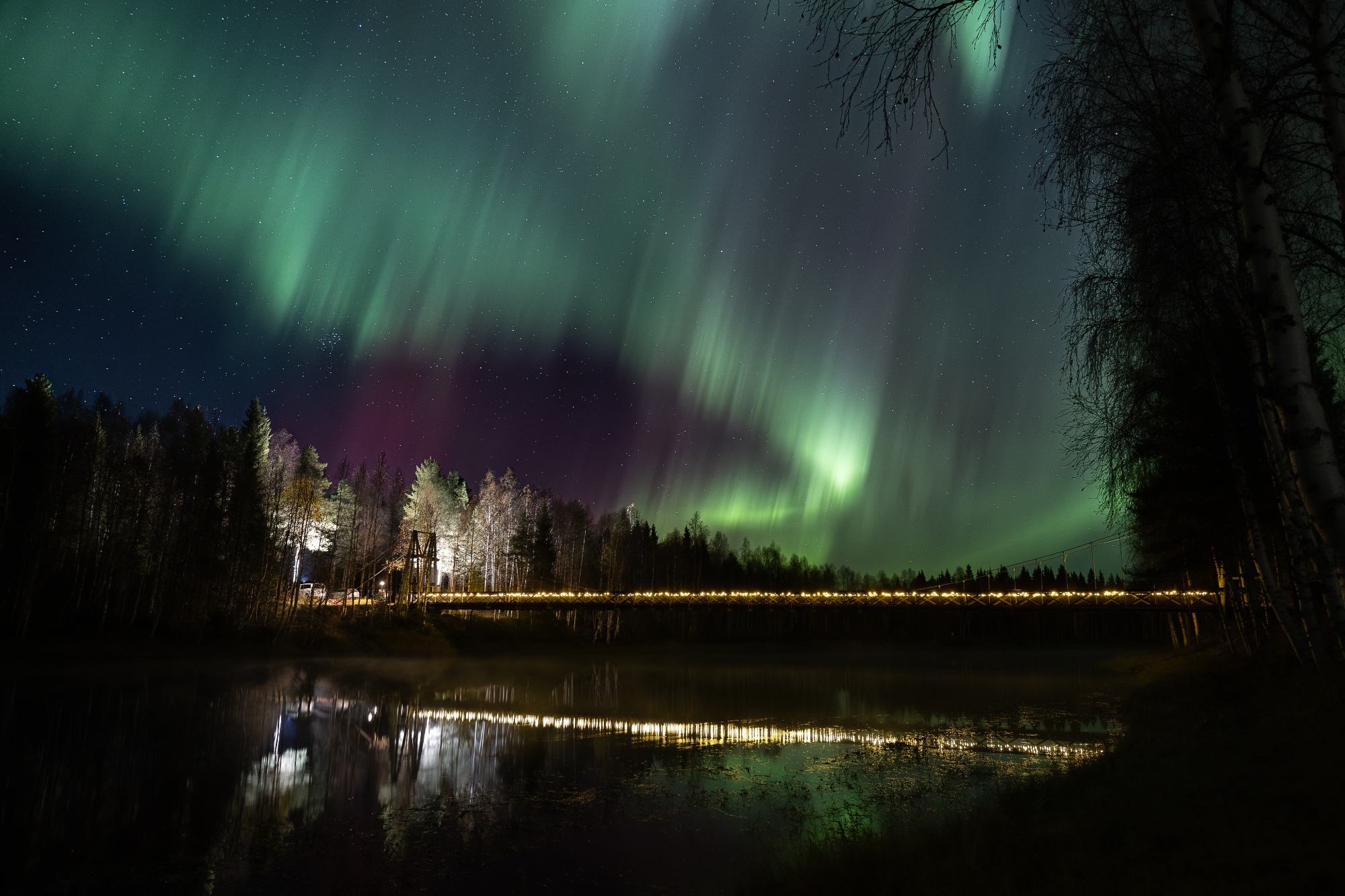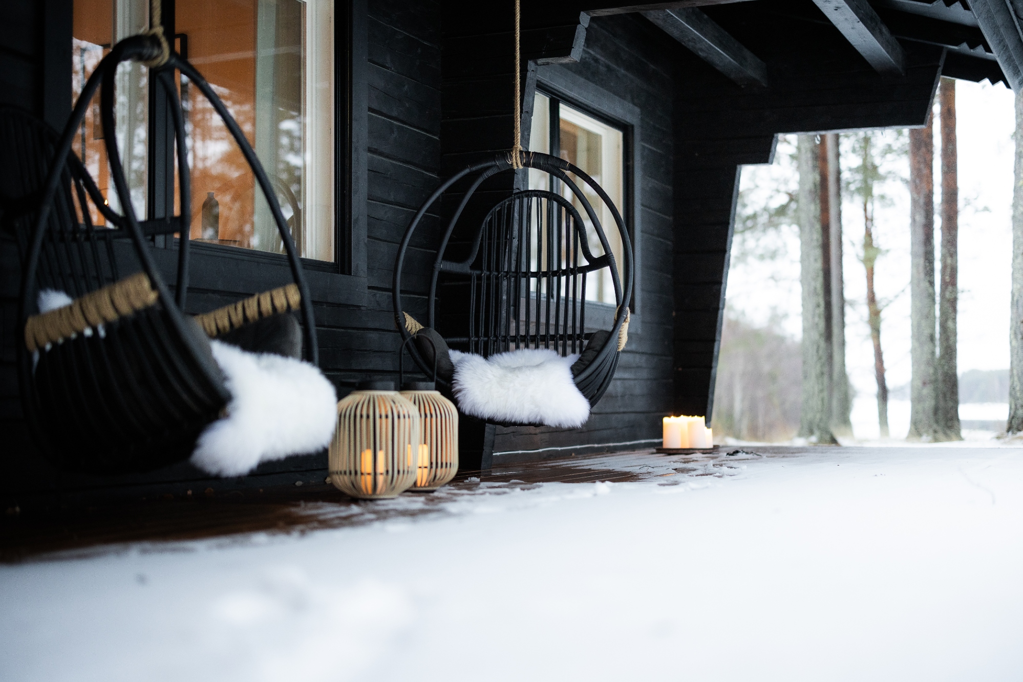 Al salir, los elementos crean el estilo: pinos cargados de nieve, un río que fluye lentamente calmado por el invierno, un cielo que cambia del rubor al índigo con precisión teatral. Algunas noches, la aurora boreal se despliega sobre nuestras cabezas: seda verde y violeta en la oscuridad. Ningún anuncio. Sin bis. Sólo presencia.