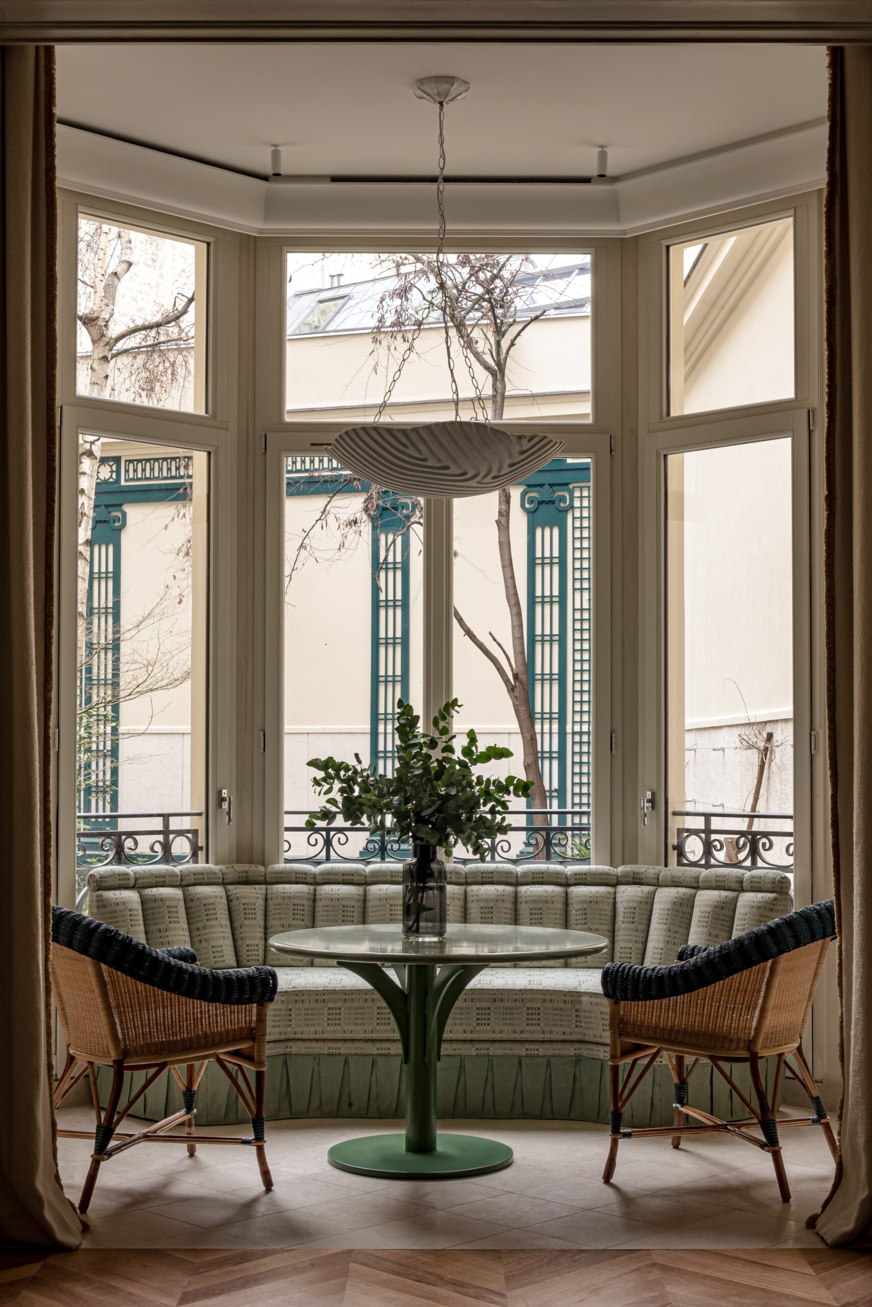 Los interiores fueron diseñados por Laura González, quien parece entender que la fantasía parisina ideal implica candelabros, terciopelo y suficiente comodidad moderna para que no te quejes. Cada apartamento logra un delicado equilibrio entre un hotel impresionantemente elegante y el elegante apartamento de un amigo, el tipo de amigo que de alguna manera siempre tiene sillones antiguos y nunca parece estresado por el alquiler. Es lujoso sin ser intimidante, lo cual es una buena noticia para aquellos de nosotros que todavía nos asustamos un poco ante los cojines decorativos.