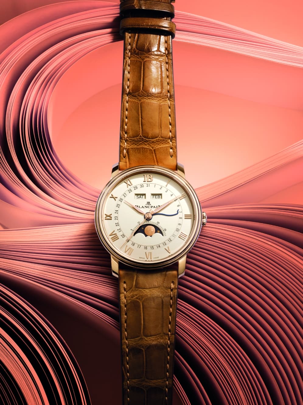 La primera fase lunar del calendario completo de 1983 es la progenitora de los relojes Villeret actuales y puso en marcha los códigos estéticos a los que los relojes de la colección se han mantenido fieles hasta el día de hoy: un estilo sobrio, una silueta esbelta, un bisel de doble escalón, una esfera limpia y muy legible en una caja redonda y el máximo respeto por las complicaciones, imbuido de la emoción y el arte que Blancpain había forjado a lo largo de su vasta historia. La sublime cristalización de la tradición relojera de Blancpain impulsó al resucitado Blancpain con renovado vigor. «El Villeret encarna la esencia misma de Blancpain», según Marc A. Hayek, presidente y director ejecutivo de Blancpain. «Es a la vez la expresión de nuestra tradición relojera y la prueba de que la elegancia atemporal siempre se puede reinventar con sutileza. Con un Villeret nunca se está demasiado o mal vestido».