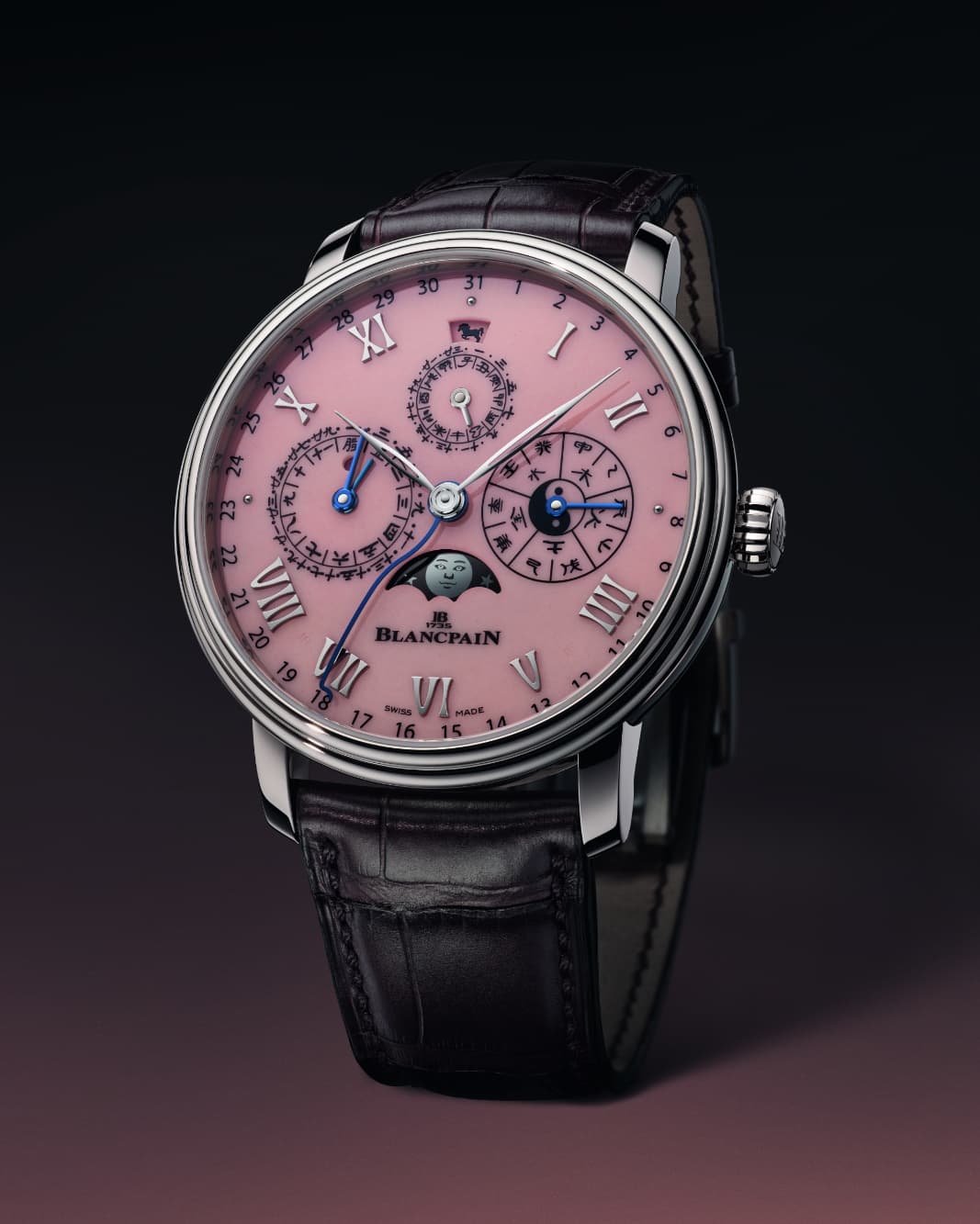 Y en ese tiempo, la colección ha acogido variaciones y complicaciones como un calendario lunar chino (la edición 2026 de Blancpain del Villeret Calendrier Chinois Traditionnel es el ejemplo más reciente de 15), una visualización de días retrógrados (el Villeret Grande Date Jour Rétrograde, de 2018), horas saltantes con visualización de minutos retrógrados y un tourbillon volante (el Villeret Tourbillon Volant Heure Sautante Minute Rétrograde, también de 2018), y un bisel engastado de diamantes con un brazalete Mille Mailles (una de las interpretaciones de Villeret Date de 2019).