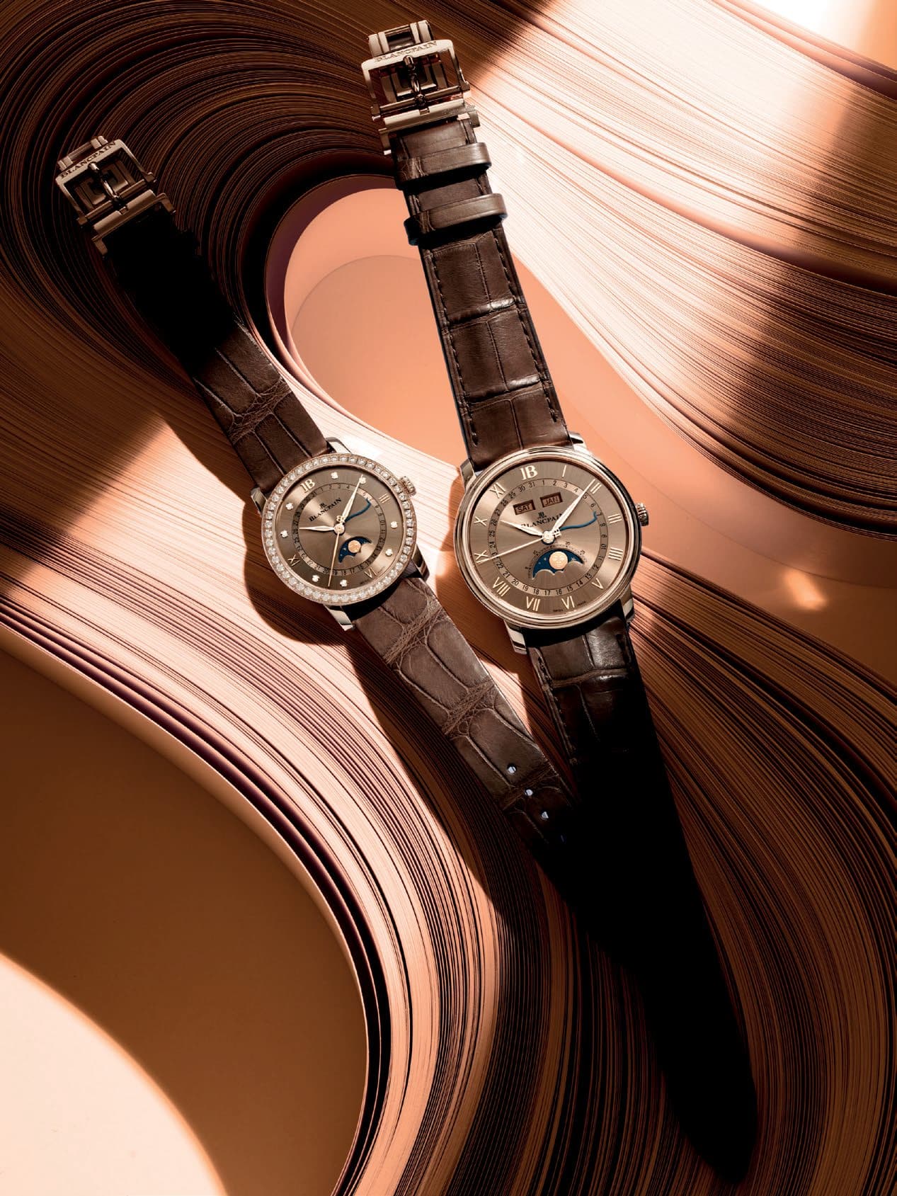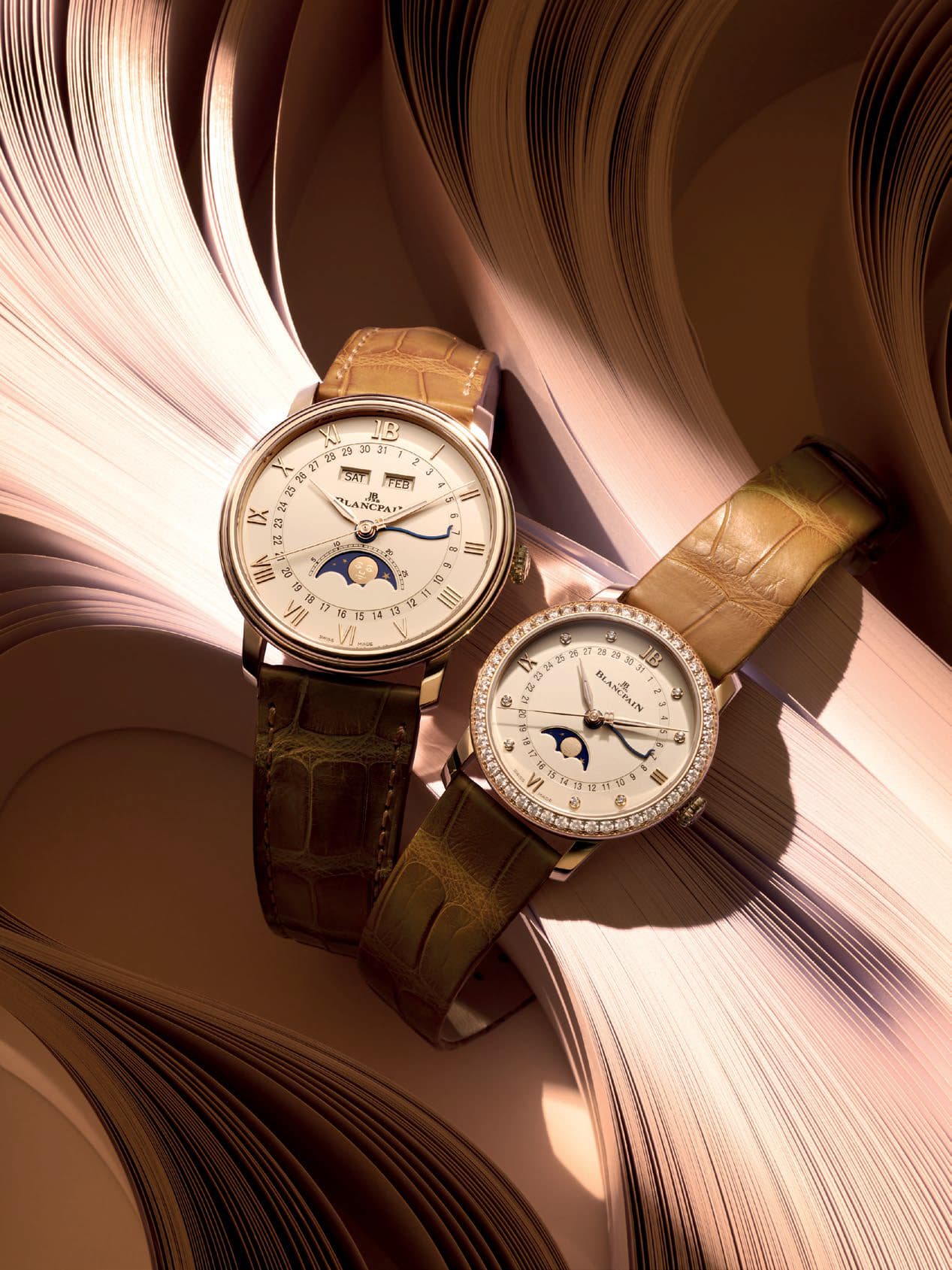 Desde el Calendario completo Fase lunar de 1983 hasta el perfeccionamiento de sus Seis obras maestras en los años siguientes y el posterior establecimiento de la colección Villeret como uno de los ejes de su obra, Blancpain ha unido el diseño contemporáneo de Villeret con el alto saber hacer relojero de la marca y su devoción por la artesanía. Con su última serie Golden Hour, ofrece su perspectiva sobre la belleza y la sofisticación que no conoce límites.