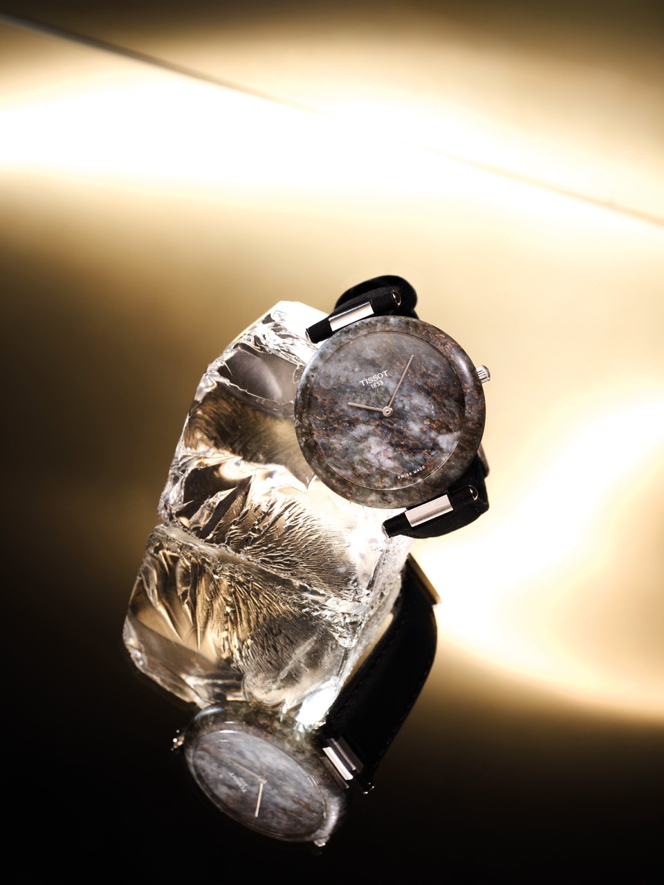 Dentro de la historia reciente de Tissot, el lanzamiento en 1969 de su colección Sideral introdujo el uso de fibra de vidrio en los relojes, y el debut en 1971 del Astrolon representó el primer reloj mecánico del mundo hecho íntegramente de plástico, incluso el movimiento. Tissot no era ajeno a traspasar los límites de las aplicaciones de materiales, por lo que un reloj creado a partir de roca sólida no era tan radical como parecía. Para fortalecer la conexión con la identidad suiza, Tissot seleccionó granito procedente de diferentes partes de los Alpes suizos, de aproximadamente 300 millones de años de antigüedad, con colores y vetas naturales que dotaban al material de un aspecto moteado, moteado o estriado.