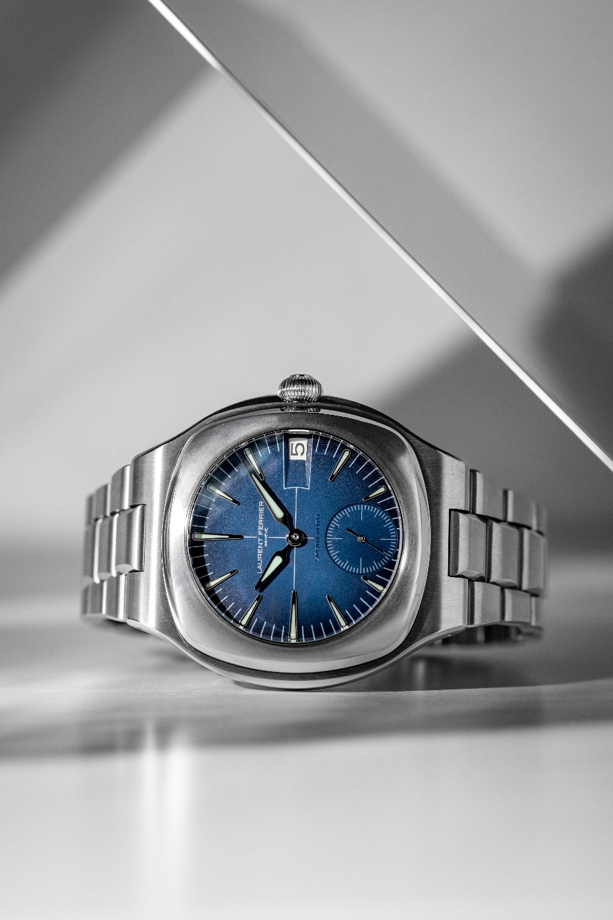 Avancemos a la década de 2020 y la culminación de ese esfuerzo se puede encontrar en la forma del Sport Auto de 41,5 mm. La colección recibió su nombre en homenaje a los orígenes de la marca Laurent Ferrier y se diseñó tomando el automovilismo y los automóviles como inspiración para su silueta evocadora, exterior elegante y curvas aerodinámicas redondeadas desde todas las perspectivas, una referencia sutil a la introducción de Laurent Ferrier en 2019 de la colección Grand Sport de modelos equipados con tourbillon de 44 mm. El Sport Auto cuenta con un brazalete de tres eslabones totalmente integrado y una caja de 12,7 mm de grosor, ambos en titanio de grado 5; una caja intermedia en forma de tonel; un bisel cuya forma recuerda a la colección Square de Laurent Ferrier; y un cristal de zafiro abombado que continúa el perfil curvo.